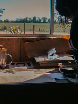 Relato da artista Giordana Winckler: Ancestralidade e território atravessam minhas insistências de trabalho. Pensar a maternidade em relação à Costa Doce me pareceu um terreno fértil para a produção de imagens. Minha intenção inicial era refletir poeticamente sobre como a maternidade é afetada pela presença das águas em seu entorno, deixando que essa experiência provocasse imagens. No entanto, como costuma acontecer na prática artística, intensificada pela maternidade, somos levadas por desvios. A experiência no Pampa, morando alguns dias no campo, me levou a fazer perguntas e perceber que elas não surgem em tempo real e orgânico. Há um tempo à parte para assimilar o encontro com a região, a presença de suas pessoas, de uma geografia própria, de um convívio possível através de uma residência com outras artistas e suas famílias, os debates e diálogos em nossos encontros. Vivendo no espaço urbano, sou constantemente provocada pela ausência da linha do horizonte. Com a ascensão de empreendimentos cada vez mais altos em Porto Alegre, como em tantas outras cidades brasileiras, não apenas perdi a percepção da paisagem, mas também o acesso à luz natural em abundância dentro de casa, comprimida entre paredões que obscurecem o entorno e achatam o tempo. Vivo em uma cidade onde o deleite de observar a paisagem tornou-se privilégio de uma minoria que habita os andares mais altos, ou daquelas cujas janelas se voltam para os raros espaços vazios urbanos. Essa arquitetura da exclusão, que estratifica o espaço e hierarquiza os olhares, não é apenas um produto do capitalismo acelerado, mas expressão de uma lógica patriarcal de organização do mundo, um sistema que historicamente exclui mulheres do direito ao tempo, ao deslocamento, ao espaço e à contemplação.